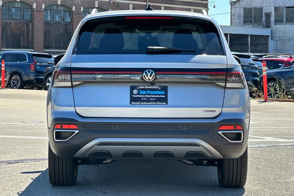 Silver 2025 Volkswagen Taos 1.5T SEL AWD 8-Speed Automatic with Tiptronic 1.5L I4 Turbocharged DOHC 16V LEV3-SULEV30 174hp