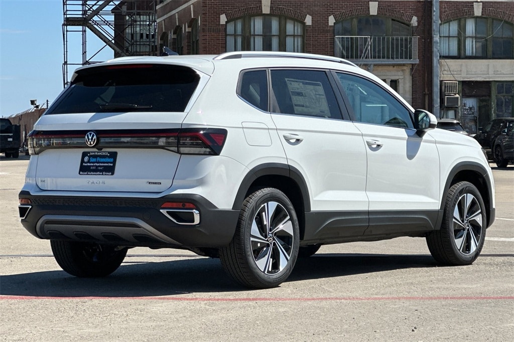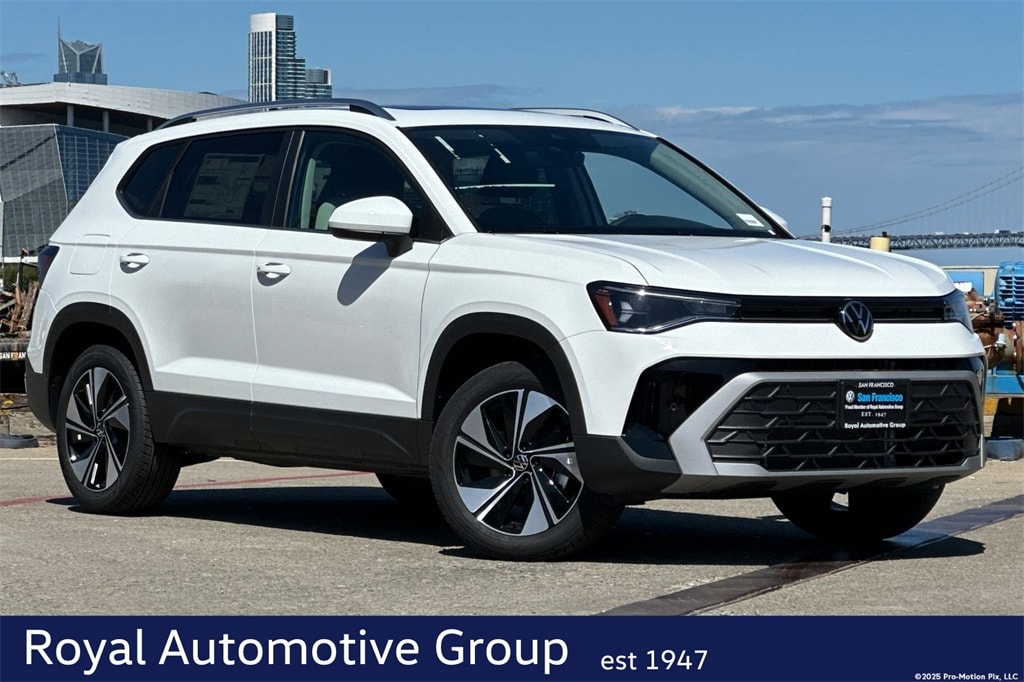 Pure White 2025 Volkswagen Taos 1.5T SE AWD 8-Speed Automatic with Tiptronic 1.5L I4 Turbocharged DOHC 16V LEV3-SULEV30 174hp
