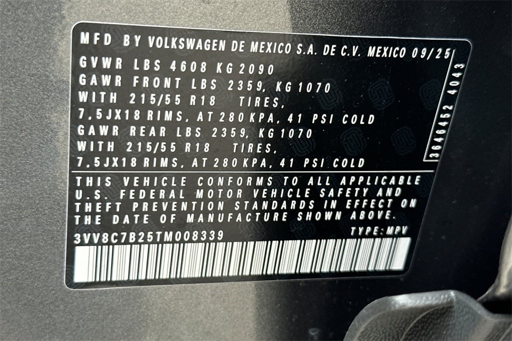 Platinum Gray 2026 Volkswagen Taos 1.5T S AWD 8-Speed Automatic with Tiptronic 1.5L I4 Turbocharged DOHC 16V LEV3-SULEV30 174hp