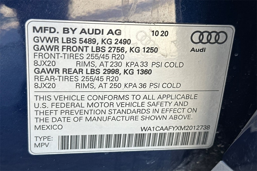 Navarra Blue Metallic 2021 Audi Q5 45 Prestige AWD.