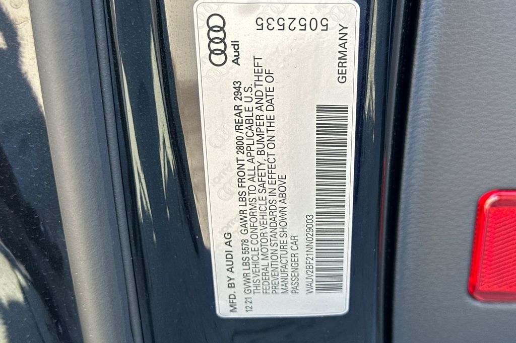 Adaptive Cruise Assist w/Lane Guidance, Bang & Olufsen 3D Premium Sound System, Black Optic Exterior Package, Black Optic Package, Contrast Stitching on Door Armrests, Convenience Package, Dual Pane Acoustic Glass, Executive Package, HD Matrix-Design LED Headlights w/High Beam Assist, Head-Up Display, Illuminated S Line Door Sills, Intersection Assist, LED Taillights w/Dynamic Indicators & Animation, Power Soft-Closing Doors, Prestige, S Line Fender Badge, S-Line Package, Sport Suspension, Traffic Sign Recognition, Wheels: 20" 5-Twin-Arm-Design Titanium.