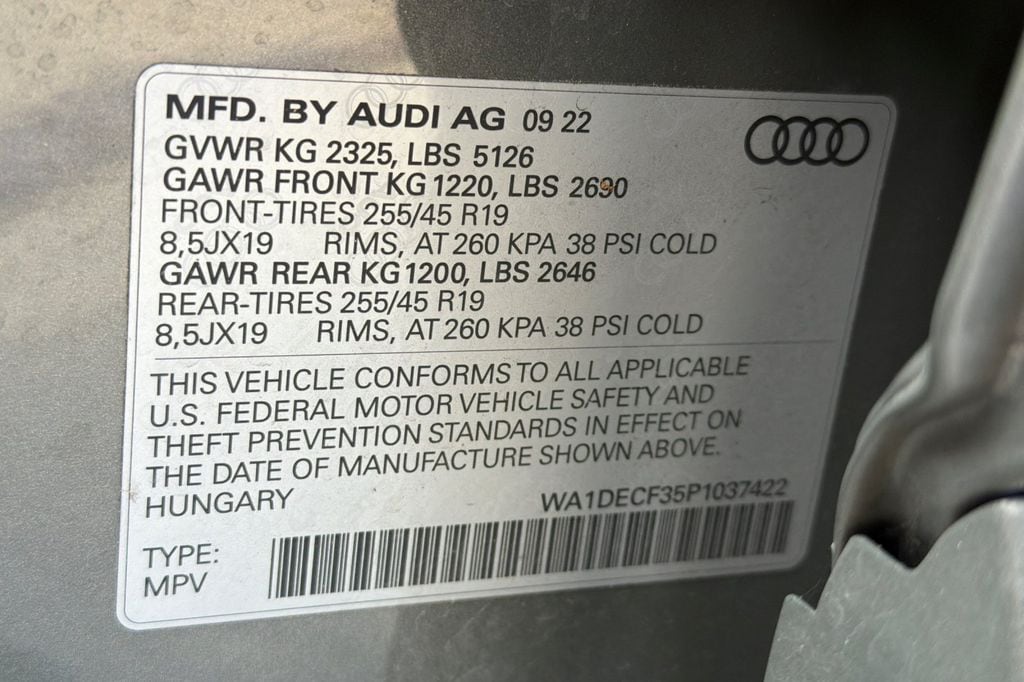 Alarm w/Motion Sensor, Audi Advanced Key, Auto-Dimming Power-Folding Exterior Mirrors, Black Optic Sport Package, Black Roof Rails, Convenience Package, Driver Seat Memory, Frameless Auto-Dimming Interior Mirror w/Compass, High-Gloss Black Exterior Elements, LED Interior Lighting Package, SiriusXM w/360L, Sport Front Seats, Wheels: 19" 5-Double-Arm Design.