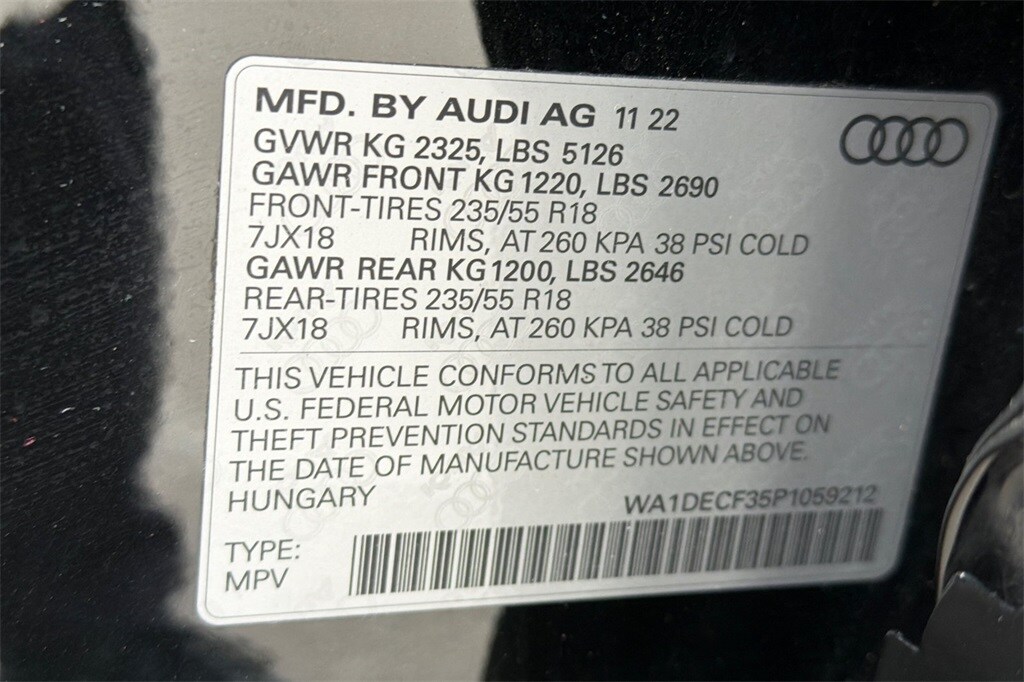 Alarm w/Motion Sensor, Audi Advanced Key, Auto-Dimming Power-Folding Exterior Mirrors, Convenience Package, Driver Seat Memory, Frameless Auto-Dimming Interior Mirror w/Compass, LED Interior Lighting Package, SiriusXM w/360L.