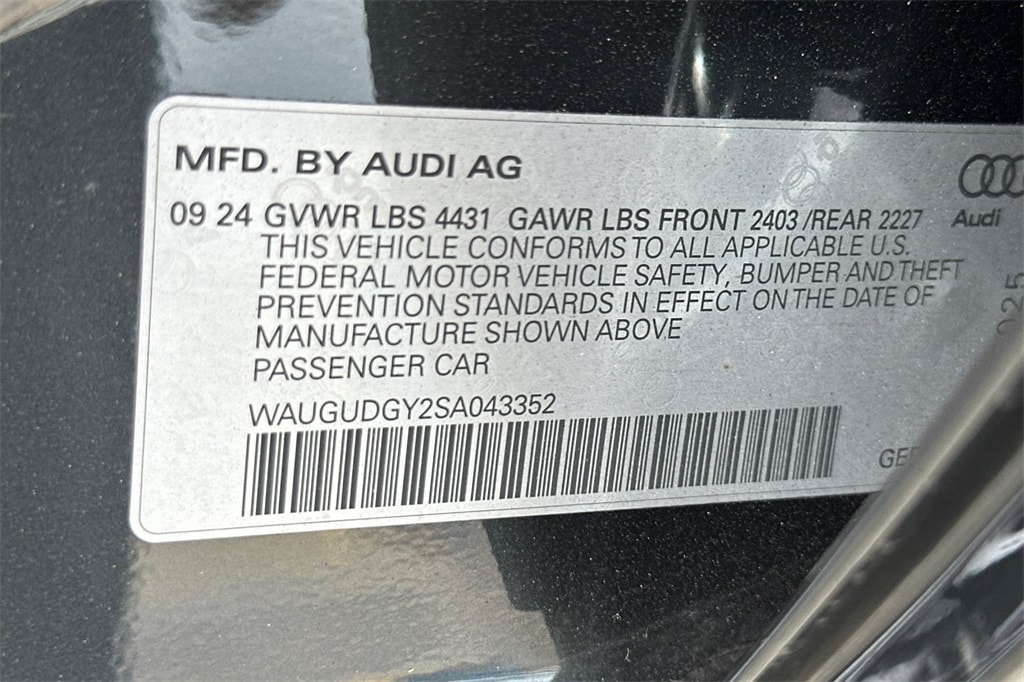 **CERTIFIED**, ABS brakes, Adaptive Cruise Assist, Alloy wheels, Audi Advanced Key, Auto-Dimming Power Folding Exterior Mirrors, Auto-Dimming Rear-View Mirror, Convenience Package, Electronic Stability Control, Front dual zone A/C, Heated door mirrors, Heated Front Bucket Seats, Heated front seats, HomeLink Garage Door Opener, Illuminated entry, Low tire pressure warning, Power moonroof, Remote keyless entry, Traction control, Wireless Phone Charging Pad.