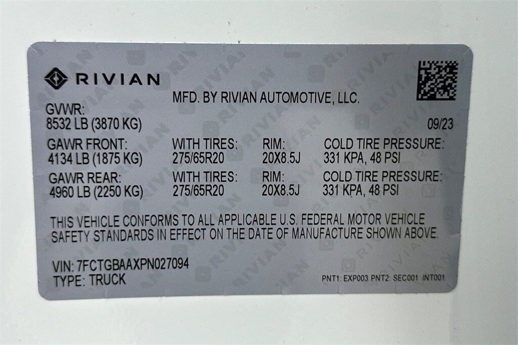 Glacier White 2023 Rivian R1T Adventure AWD.