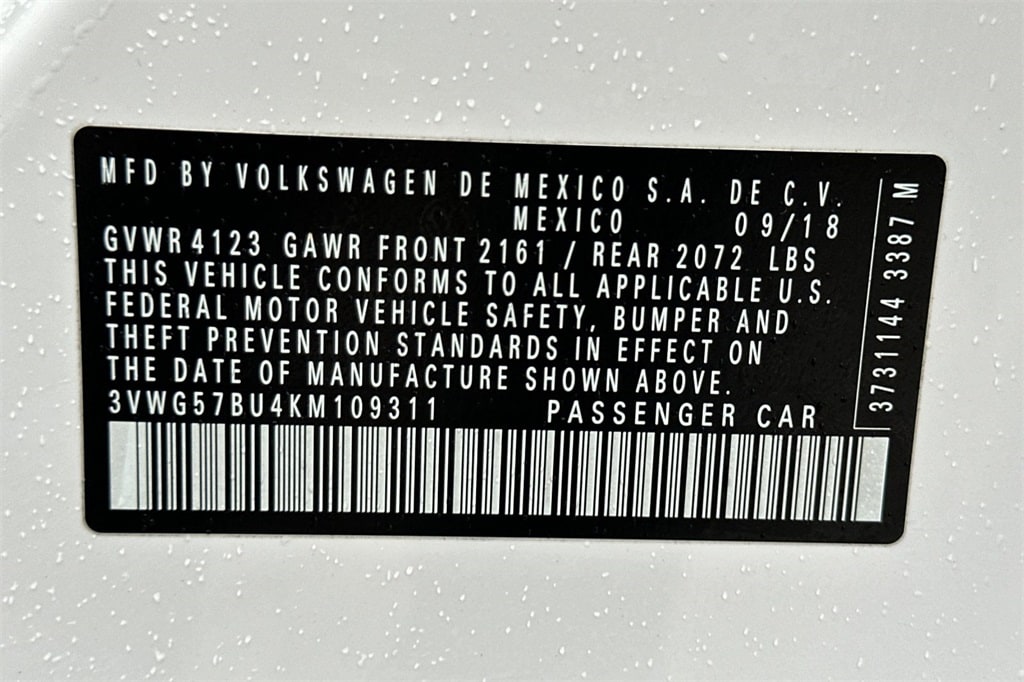 Pure White 2019 Volkswagen Jetta SEL FWD.