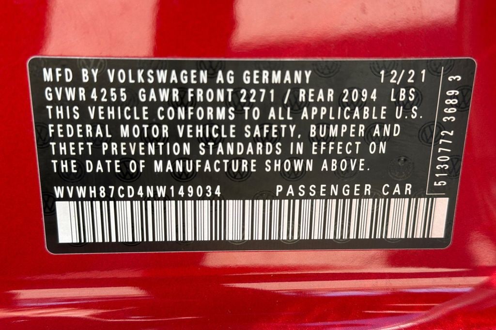 * Volkswagen Certified Pre-Owned Limited Warranty Coverage: 2-Years/24,000-Miles (whichever occurs first) High-Voltage Battery Limited Warranty: 8 Years/100,000 Mile (whichever occurs first) 2 Years of 24-Hour Roadside Assistance, Three Months of SiriusXM Platinum Plan Trial Subscription