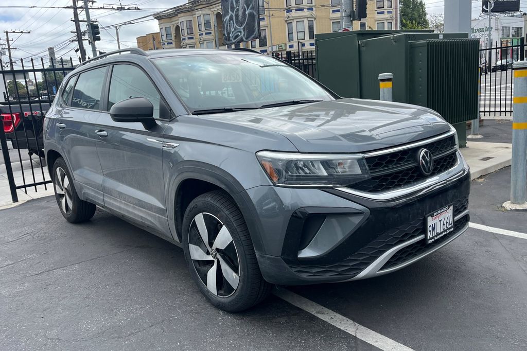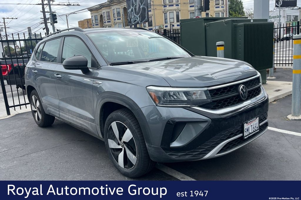 Certified. Platinum Gray Metallic 2024 Volkswagen Taos 1.5T S AWD.
