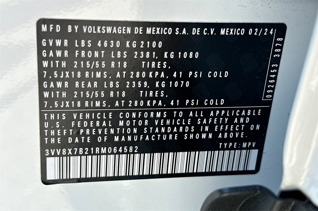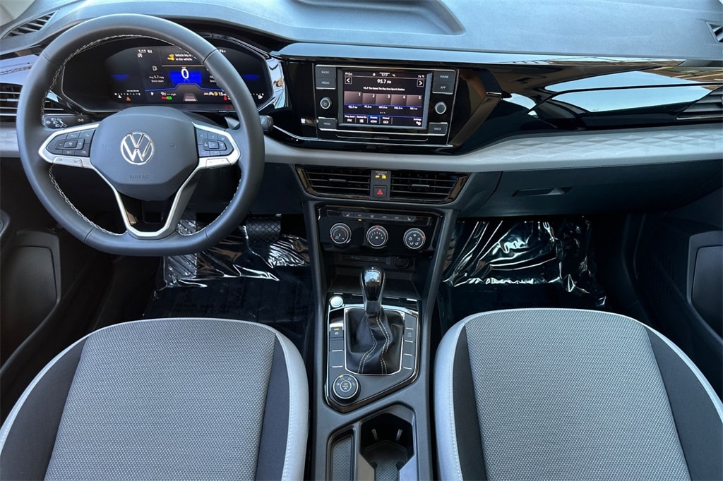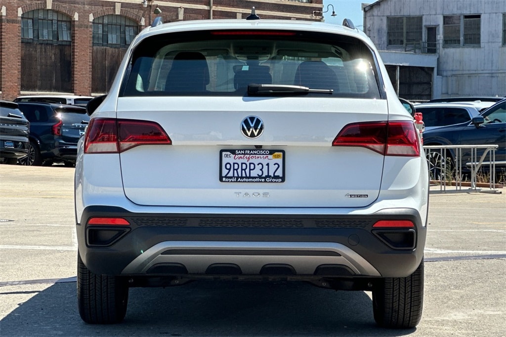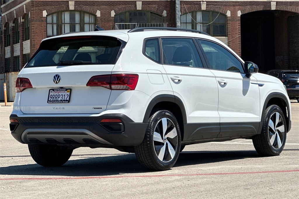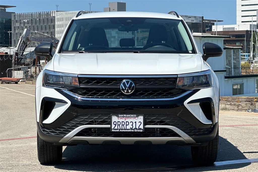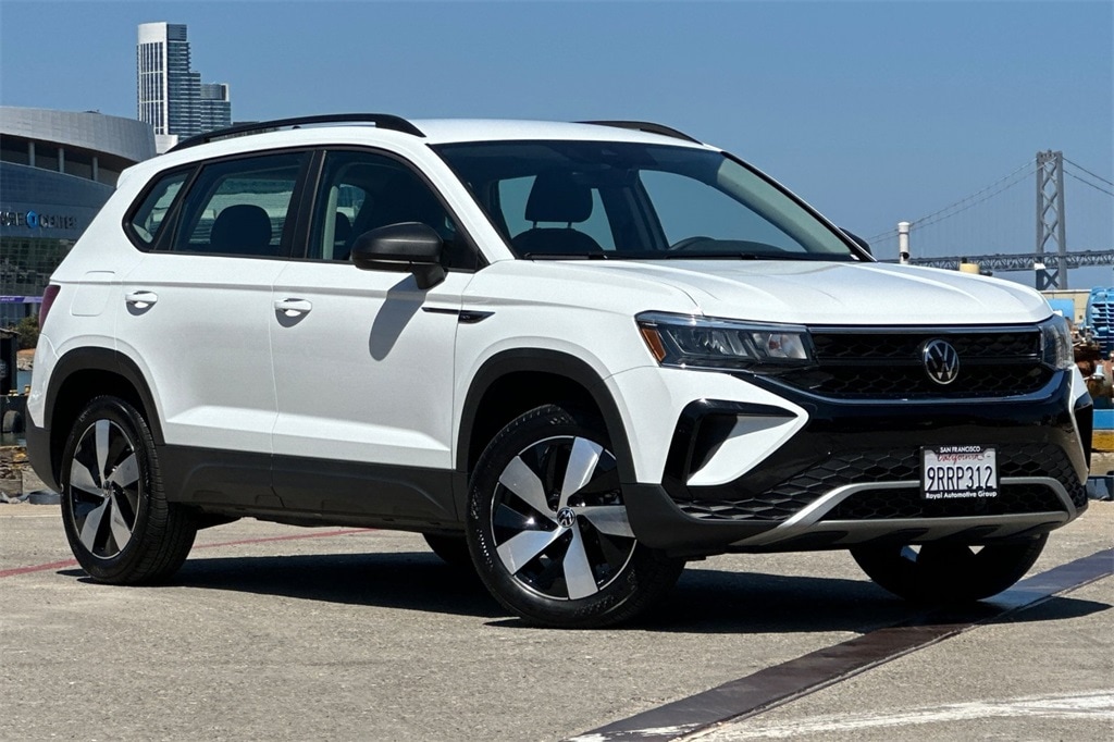 Certified. Pure White 2024 Volkswagen Taos 1.5T S AWD.