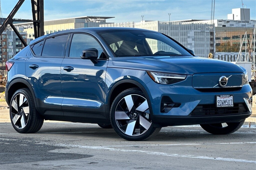 Certified. Fjord Blue Metallic 2023 Volvo C40 Recharge Pure Electric Ultimate AWD.